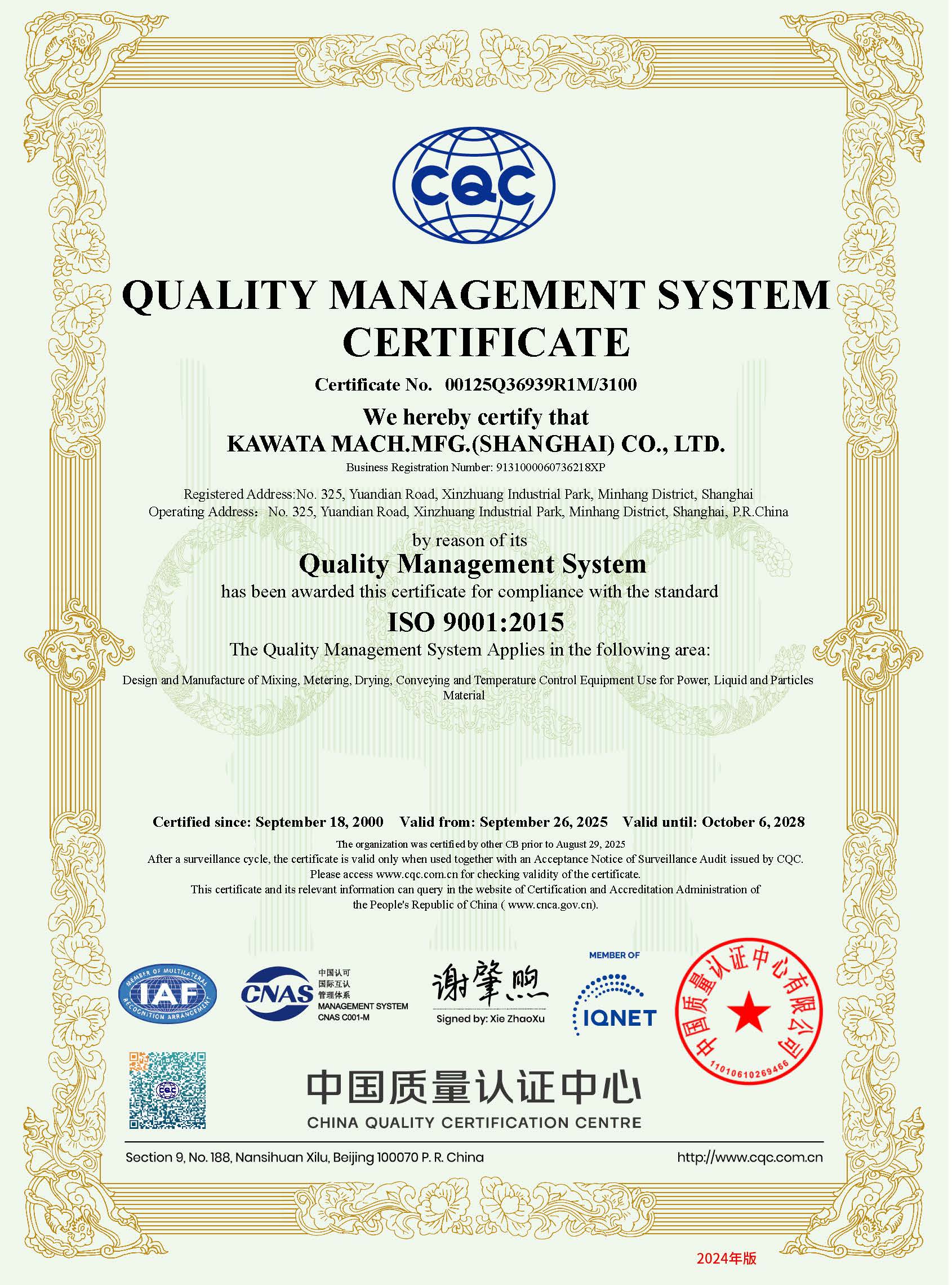 ISO14001 品質(zhì)管理システム証書(2025.9.26-2028.10.6)