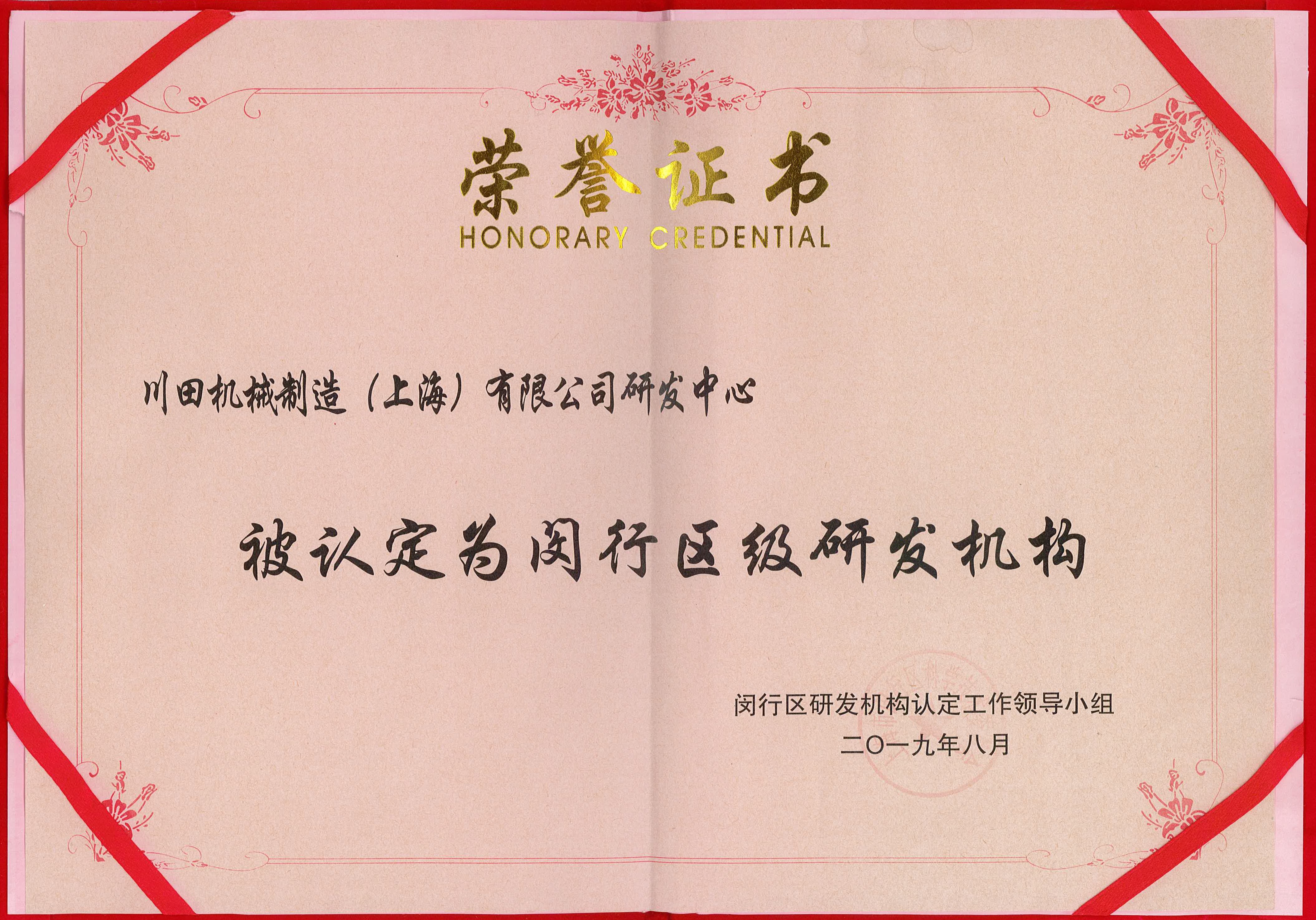2019年度閔行區(qū)研究開発機(jī)構(gòu)証書