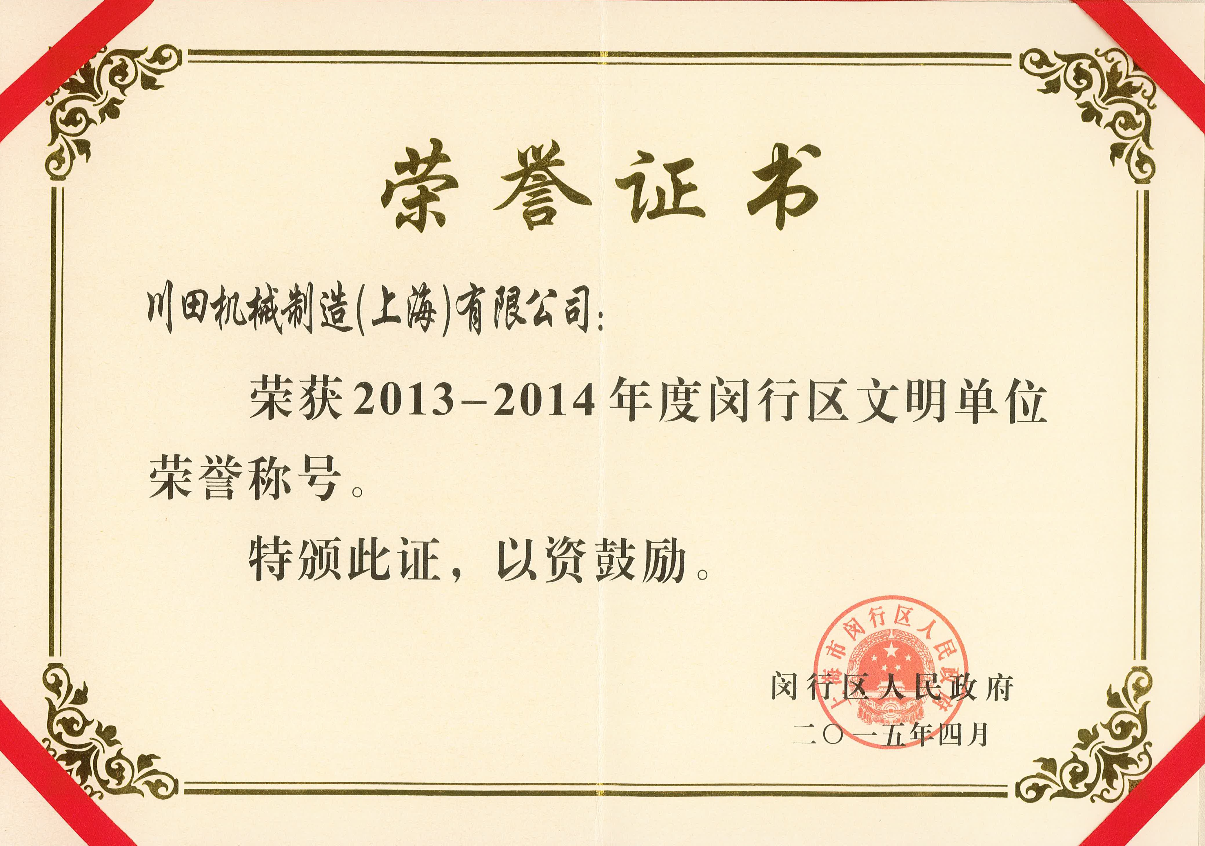 2013-2014年度閔行區(qū)文明企業(yè)