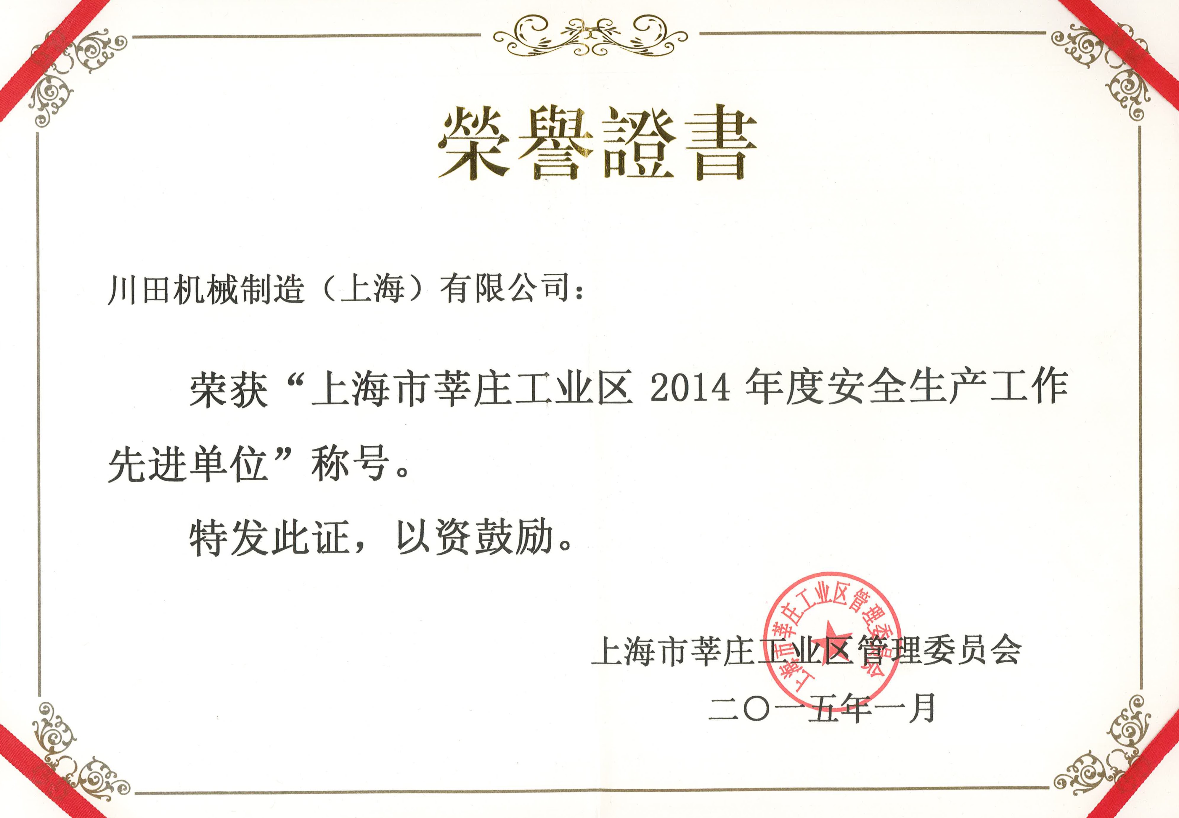 2014年度莘莊工業(yè)區(qū)安全作業(yè)先進(jìn)企業(yè)