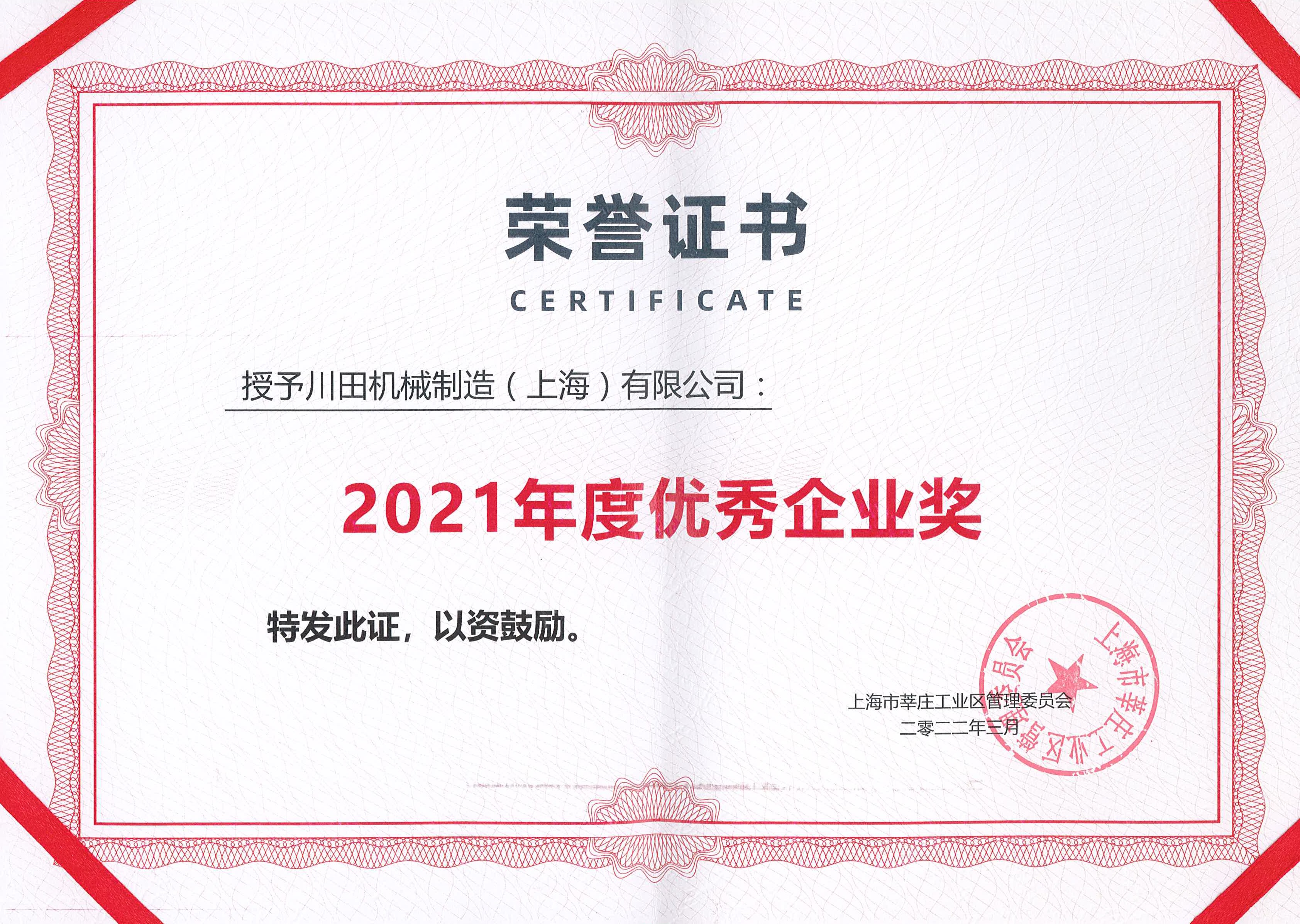 2021 莘莊工業(yè)區(qū) 優(yōu)秀企業(yè)獎(jiǎng)證書(shū)